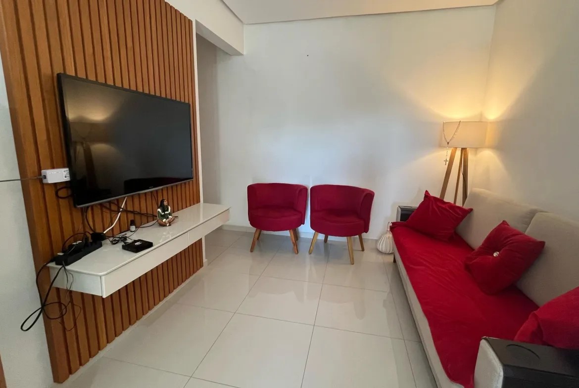 Este apartamento com 100.28m² reúne conforto, praticidade e lazer completo: Sala de Estar, Cozinha funcional, Banheiro Social, 2 dormitórios, Varanda para relaxar, praticamente todo mobiliado, Vaga de garagem, Piscina para os dias de sol e Salão de festas para celebrar momentos especiais e o melhor possui Elevador no prédio.
