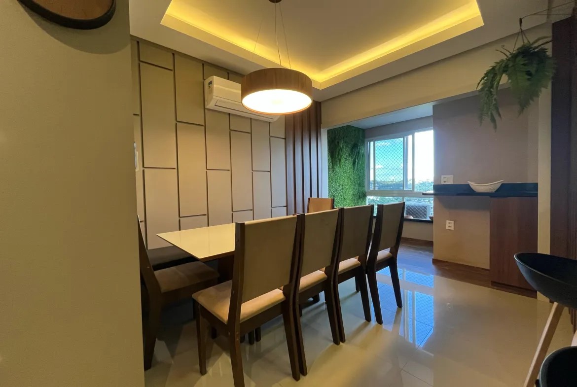 Totalmente mobiliado com móveis sob medida, ele conta com: Sala de Estar, Sala de Jantar com Varanda Gourmet integrada, Cozinha, Área de Serviço, 3 Dormitórios sendo 1 deles Suíte, Banheiro Social, Condomínio com piscina e salão de eventos e 2 Vagas de Garagem!