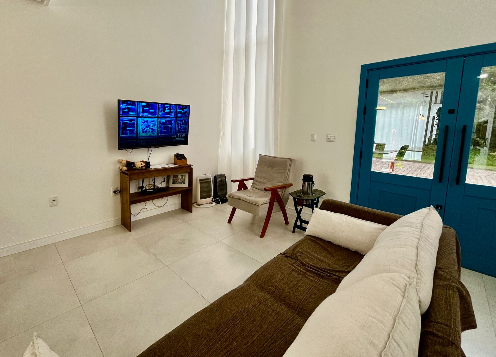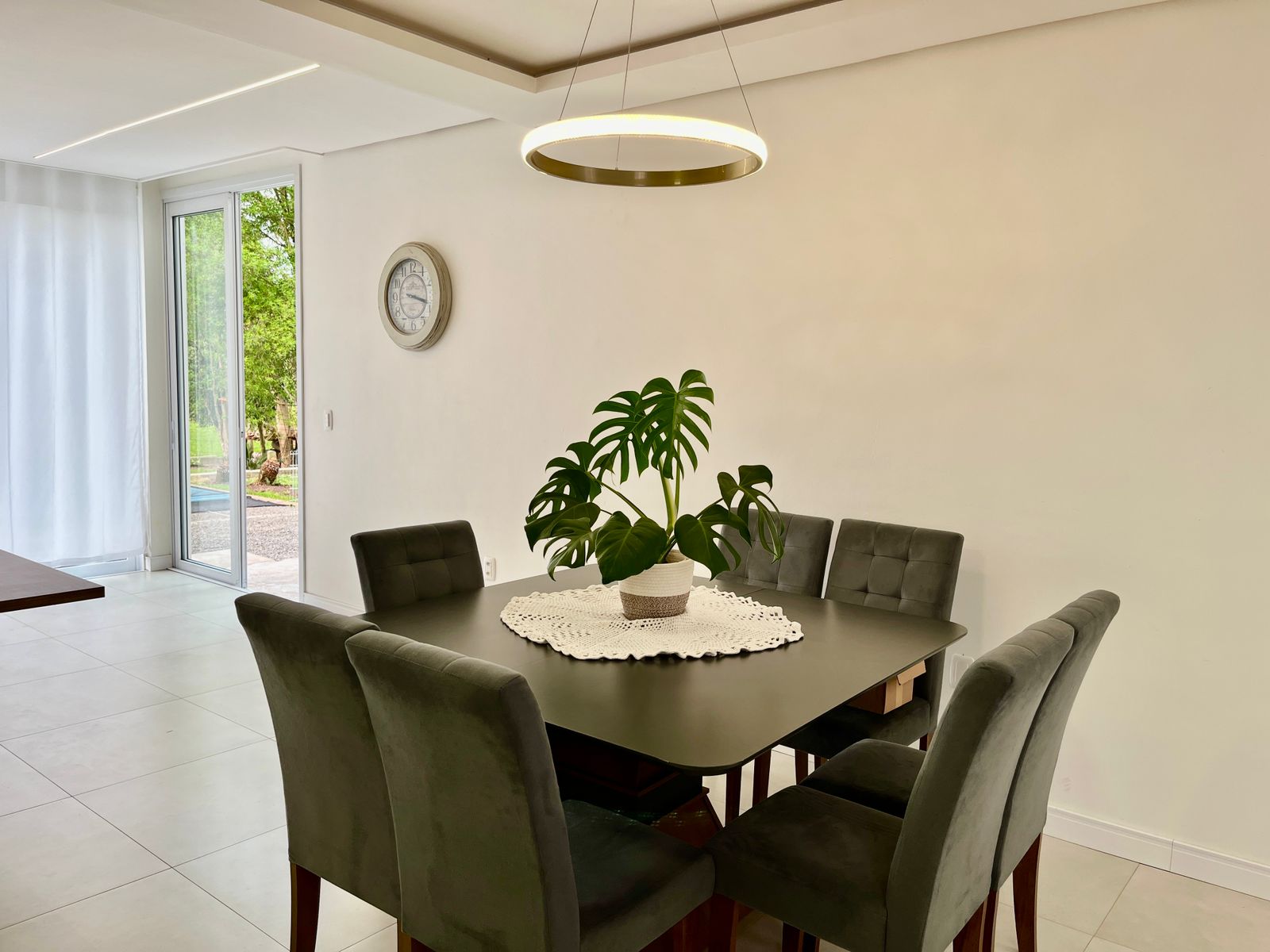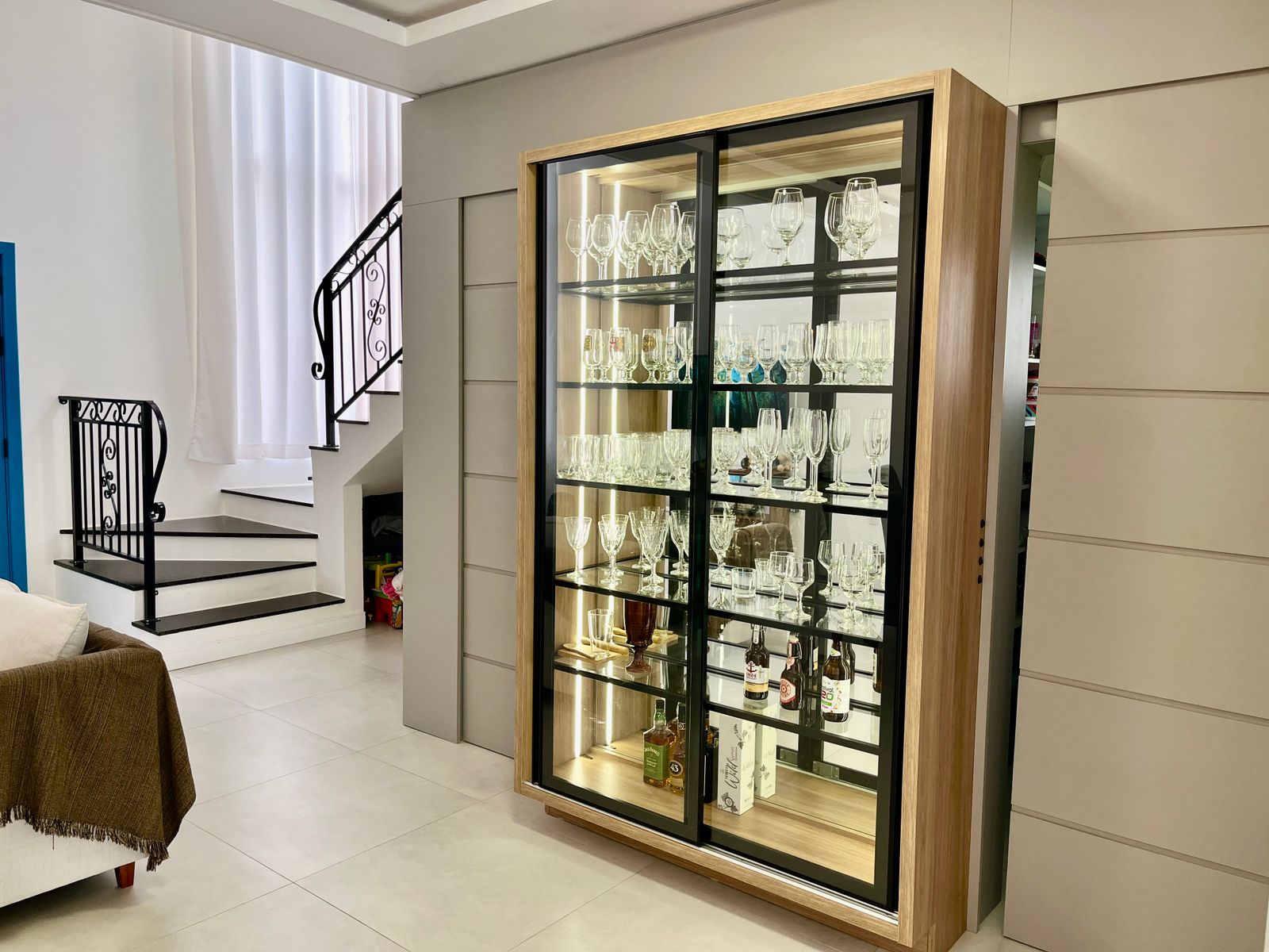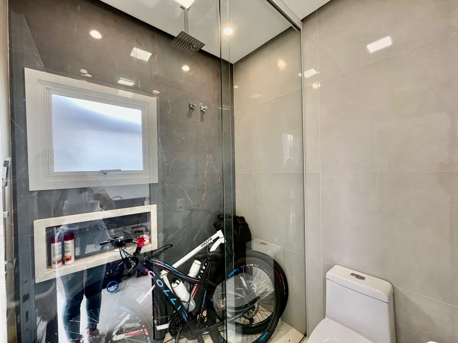 A casa possui pé direito alto, persianas automatizadas em todos os quartos, sistema de aquecimento solar, espera para ar- condicionado em todos os ambientes, piso em laminado e porcelanato, sistema fotovoltaico