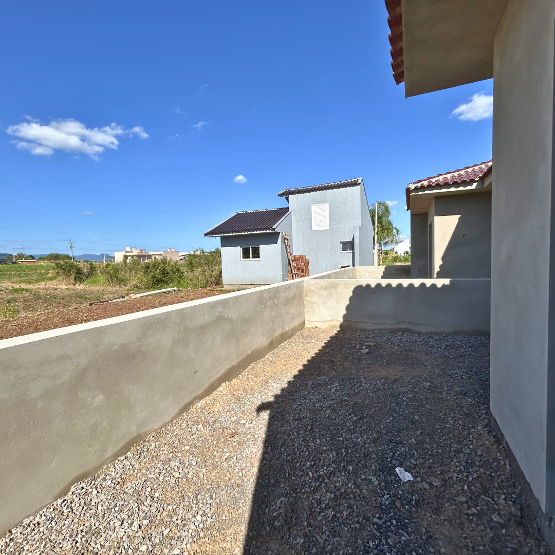 Com 66m² de área construída, cada unidade conta com: Sala de estar, Cozinha, 2 dormitórios, Banheiro social, Área de serviço separada e Pátio frente e fundos