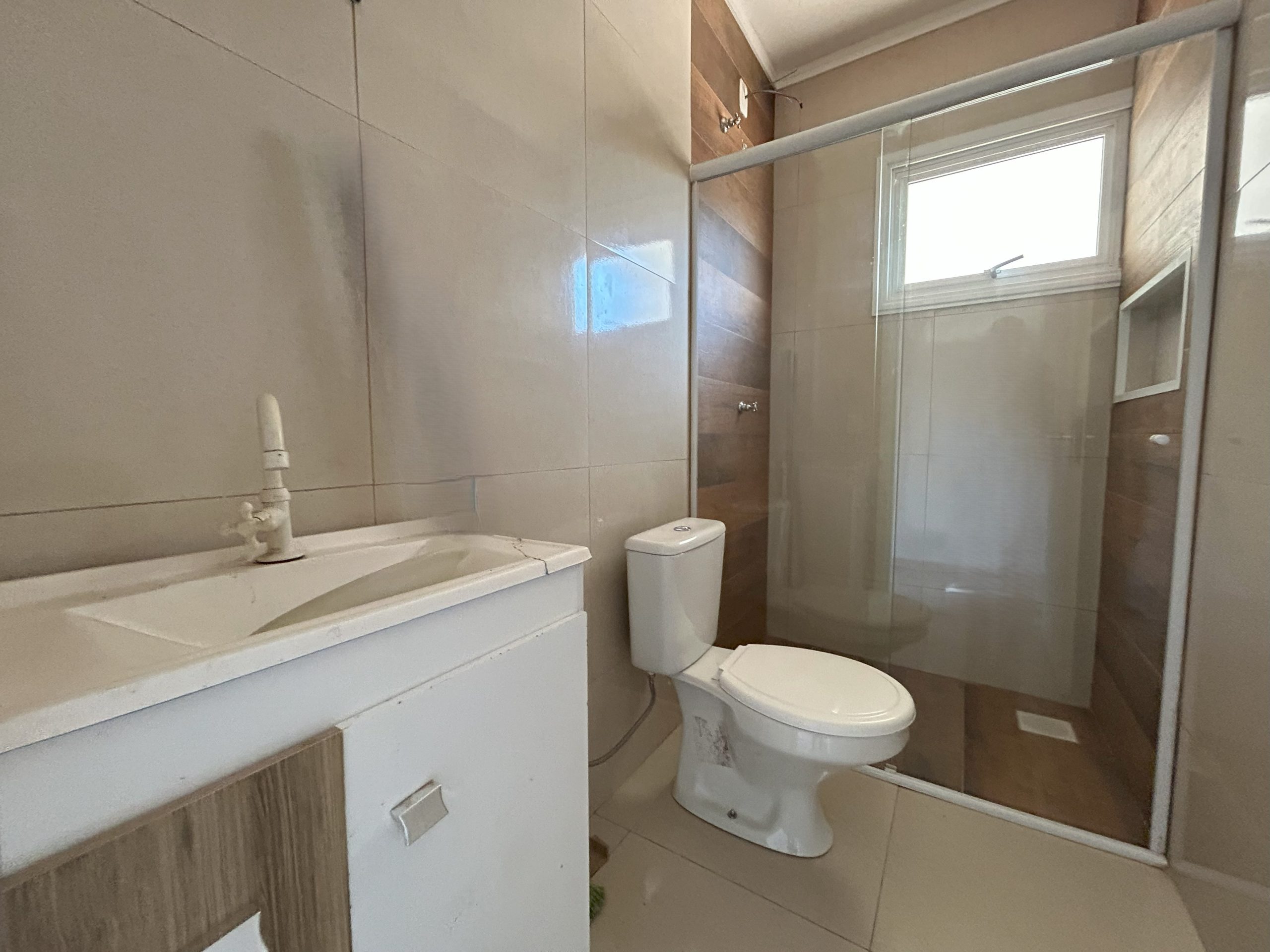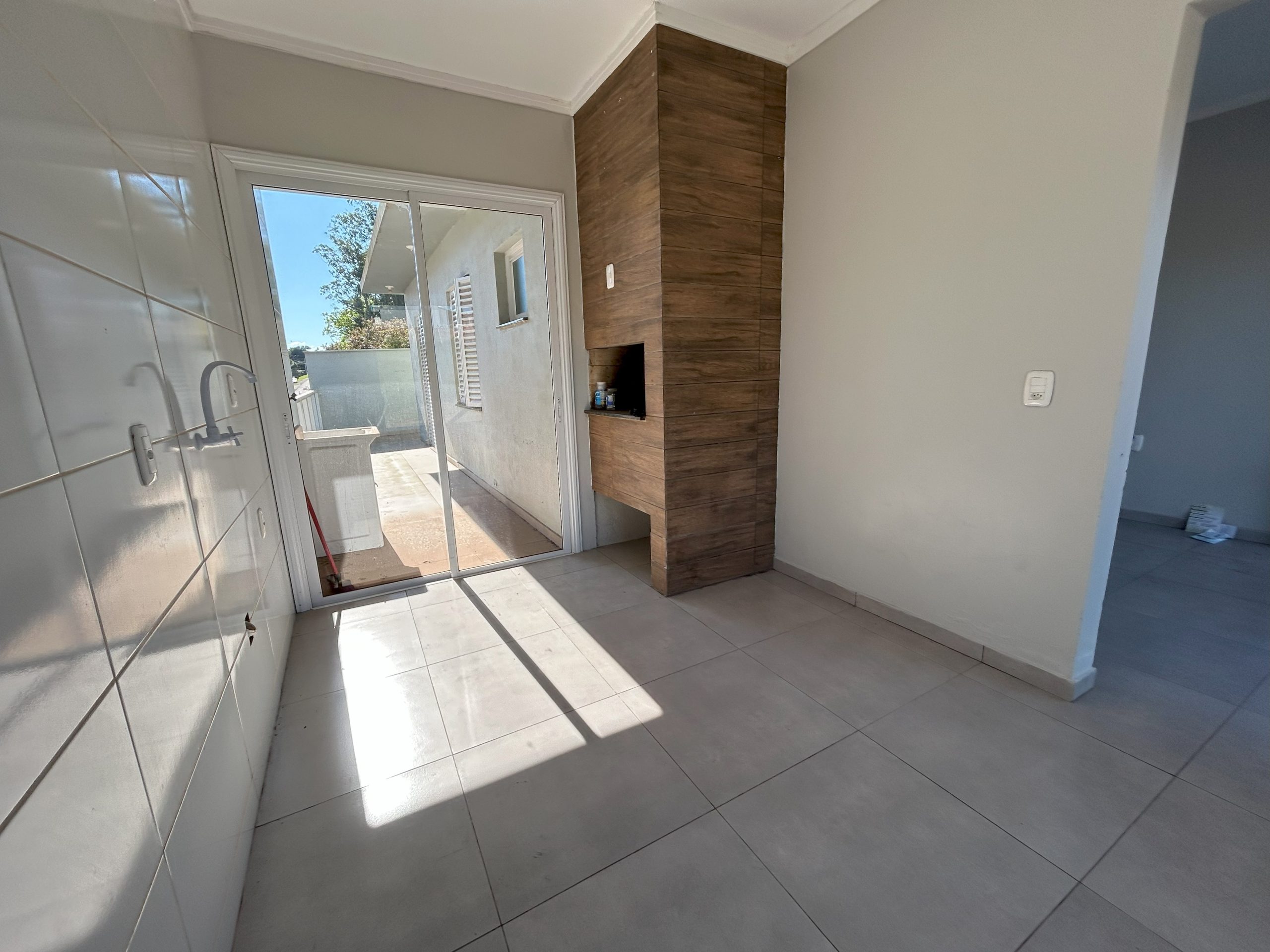 A casa possui 60m², oferecendo uma sala de estar, cozinha com churrasqueira integrada, 2 dormitórios (sendo um deles suíte), lavanderia com sacada e 1 vaga de garagem. Localizada em uma região tranquila e com fácil acesso a comércios, escolas, transporte público e indústria local.