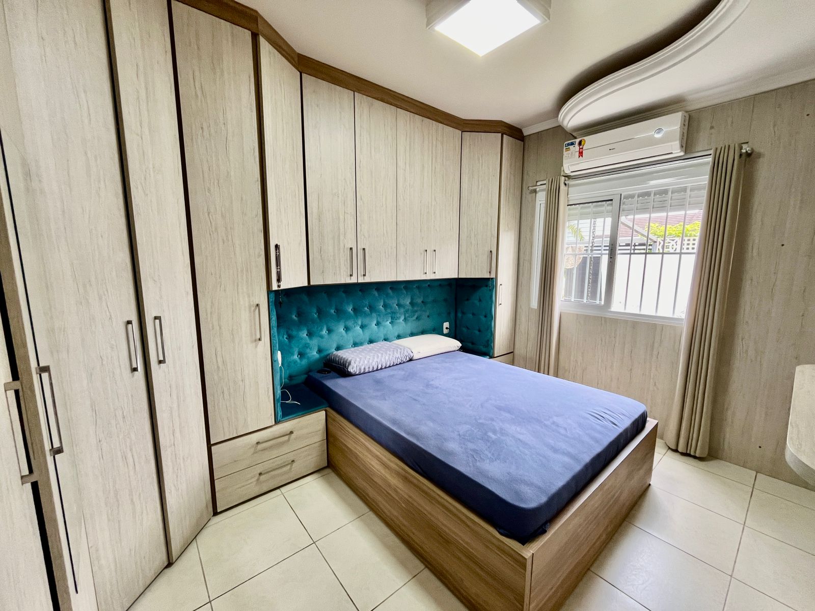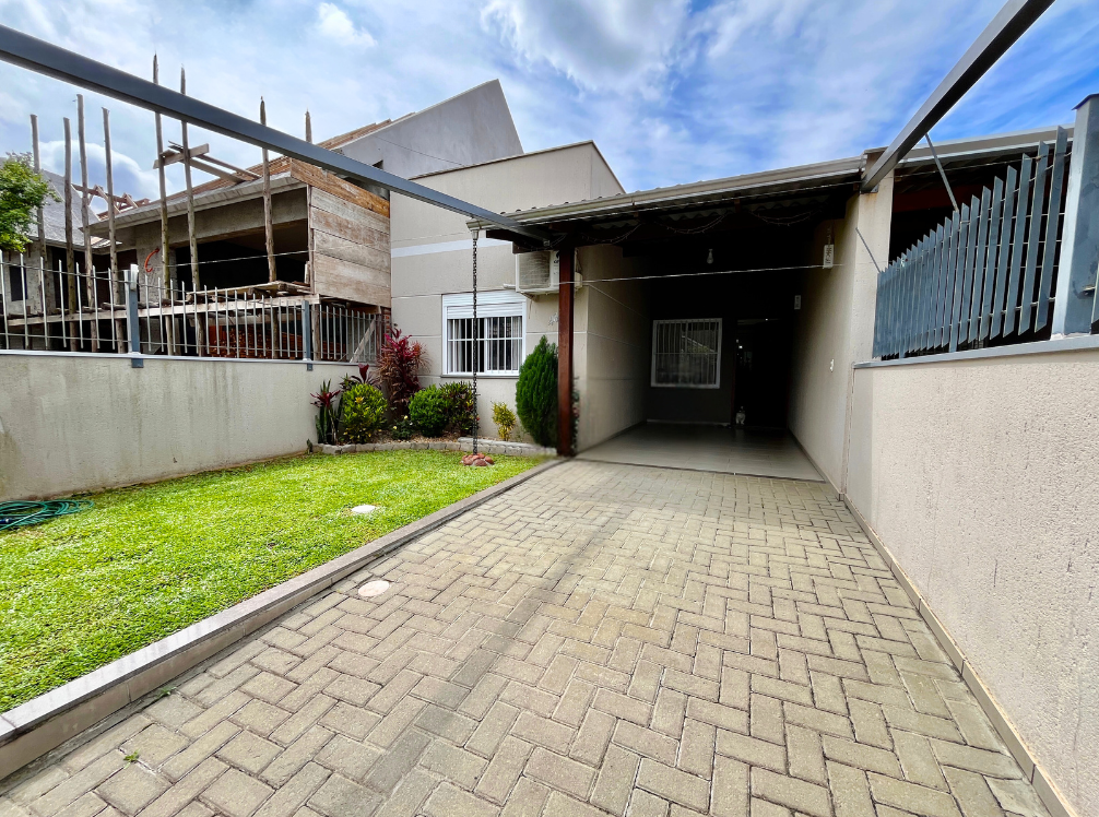 Casa Geminada com área Gourmet, contando com 2 dormitórios sendo 1 deles suíte, perfeita para momentos de privacidade e conforto, banheiro social, sala de estar, cozinha, ambos funcionais, para quem gosta de cozinhar e socializar ao mesmo tempo. O quiosque nos fundos com churrasqueira, que pode ser usado para confraternizações, churrascos ou simplesmente como um local de lazer e descontração, lareira, vaga de estacionamento com portão eletrônico. Perfeita pra você que gosta de uma casa mais reservada!