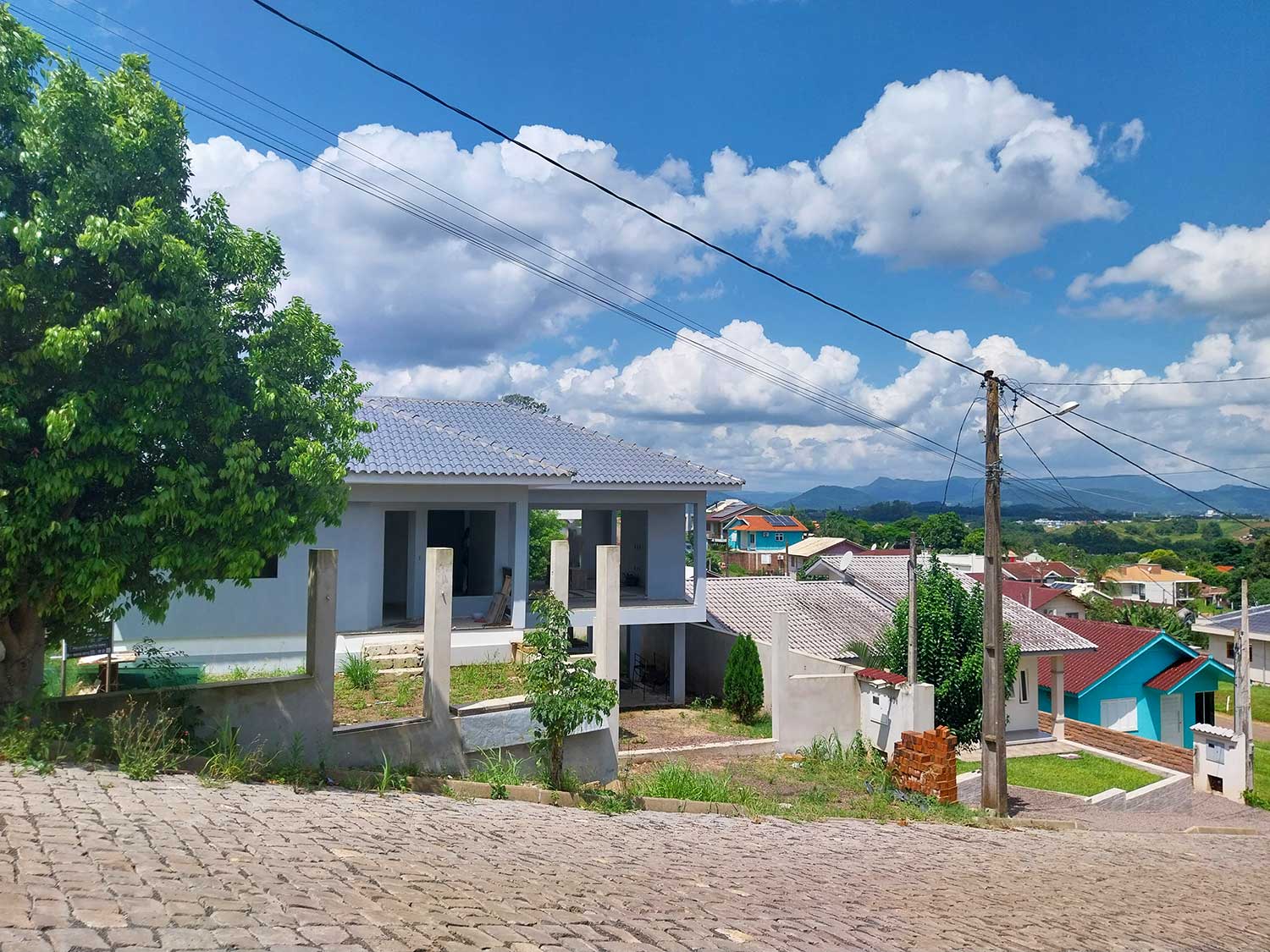 Localizado no alto do Bairro Bela Vista, a casa que está em fase de finalização é composta por: