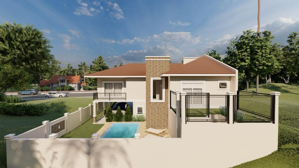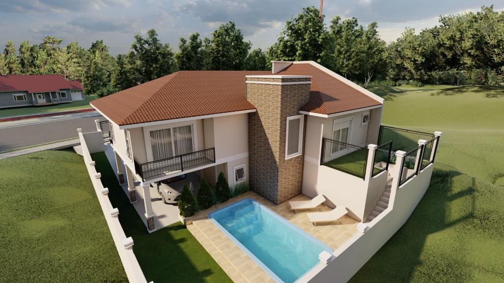 Então você vai se encantar com o projeto dessa ampla residência com cerca de 233,52m², comtemplada por uma vista incrível da cidade de Arroio do Meio!