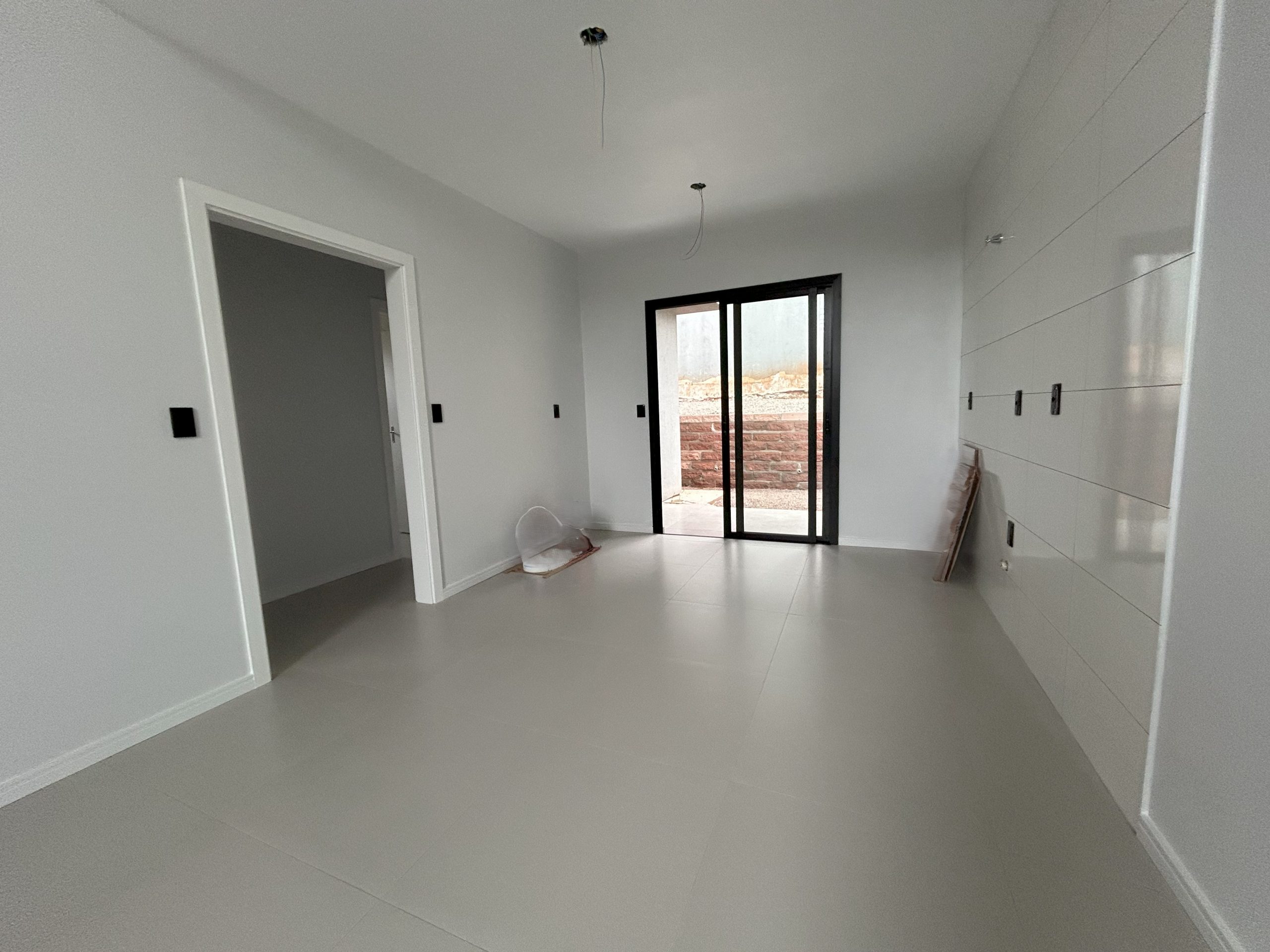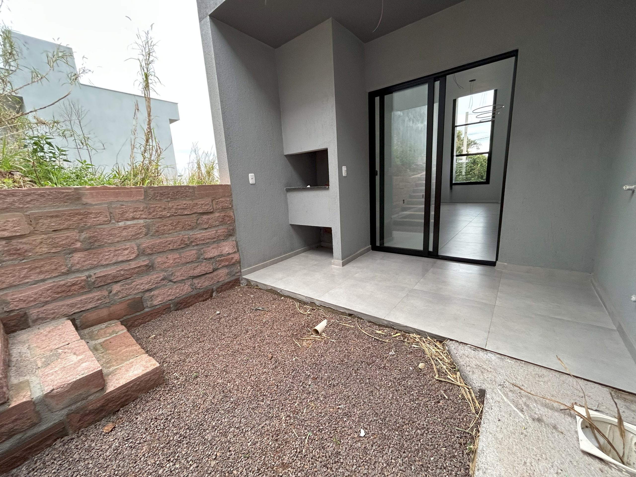2 dormitórios — sendo 1 suíte, Banheiro social, Sala de estar, Cozinha, Área de serviço, Churrasqueira, Pátio nos fundos