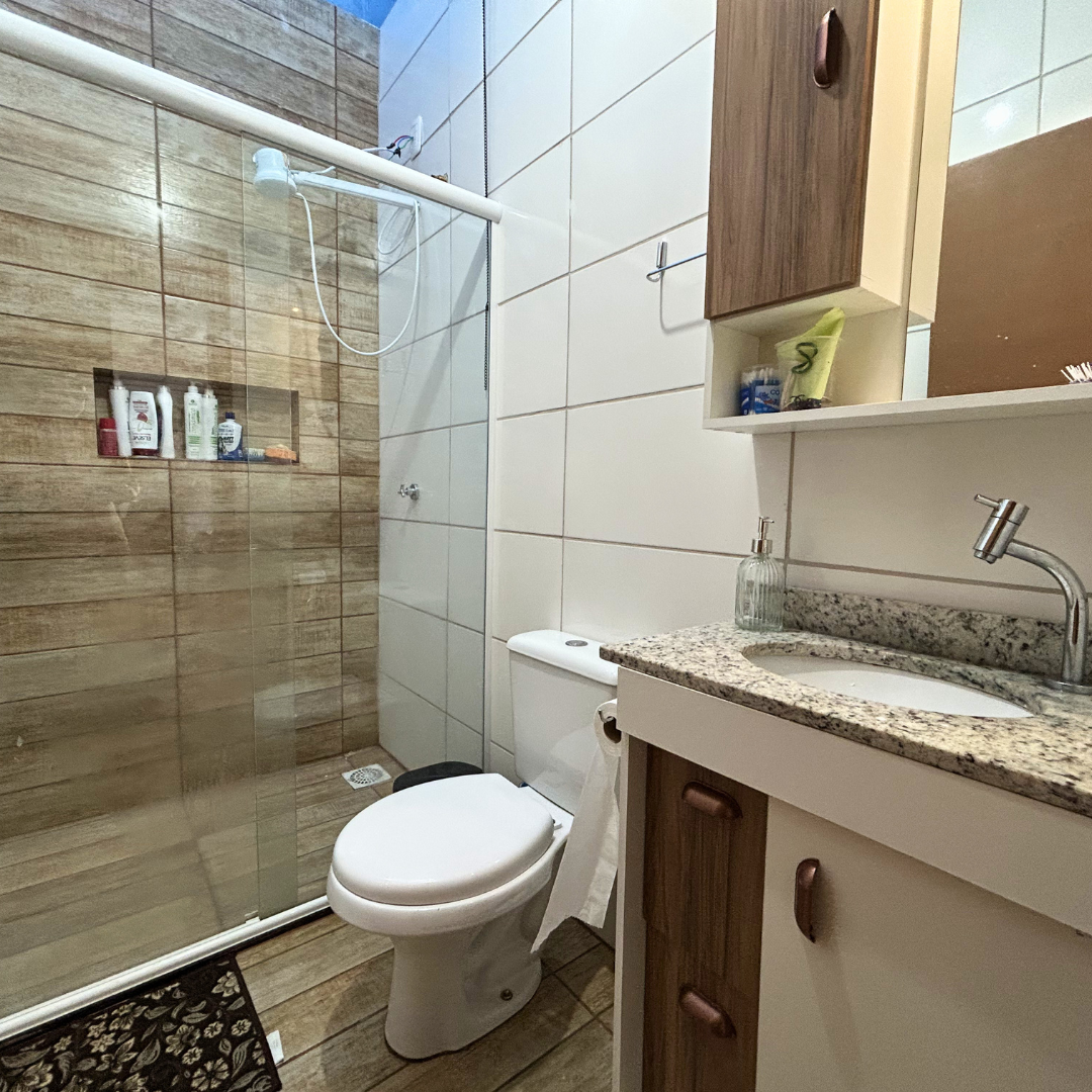 A casa possui 58m² de área construída e um terreno com 210m², sendo composta por: Sala de estar integrada com a cozinha, 2 amplos dormitórios, Banheiro social, Pátio na frente e nos fundos e Vaga para estacionamento