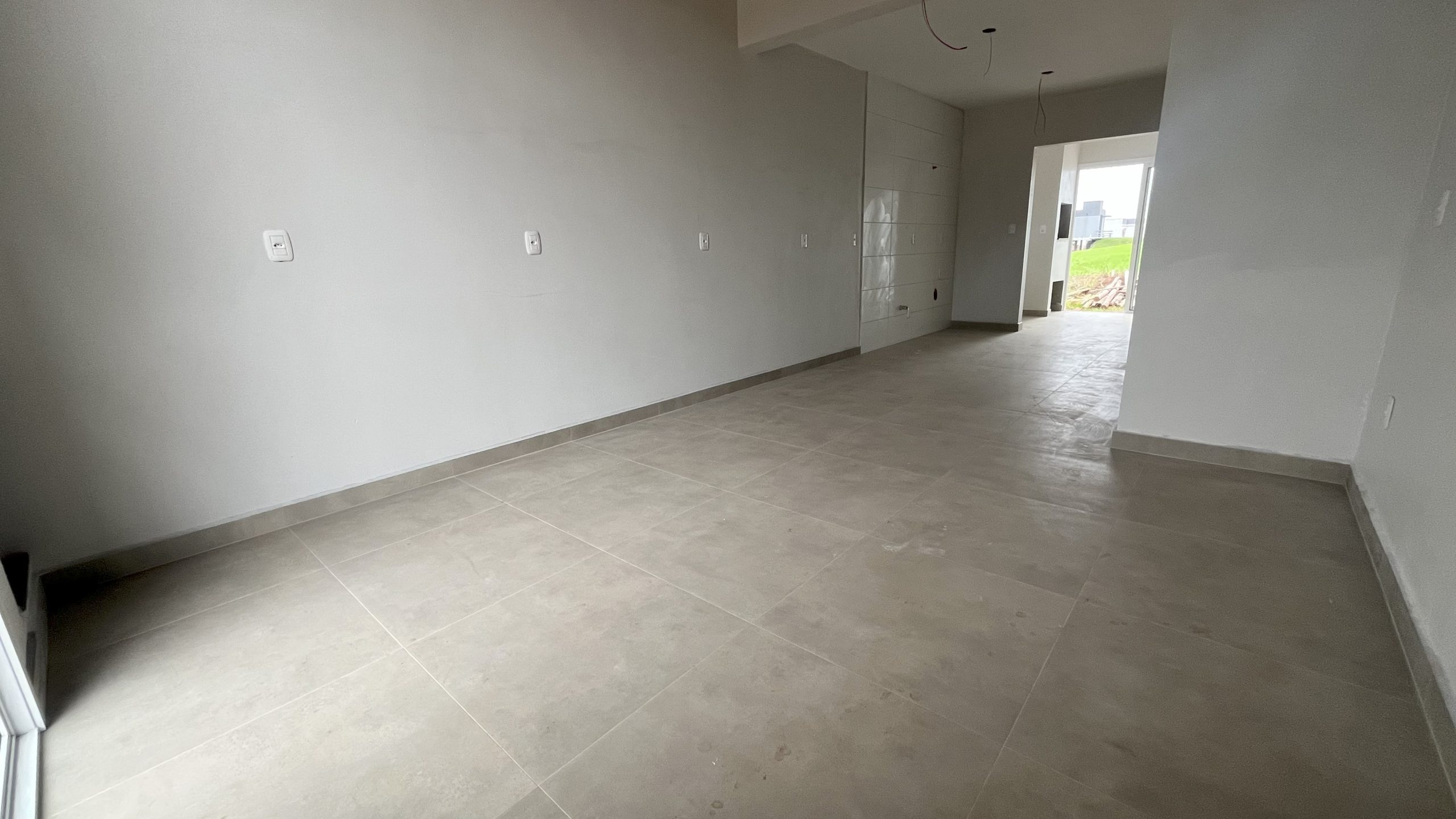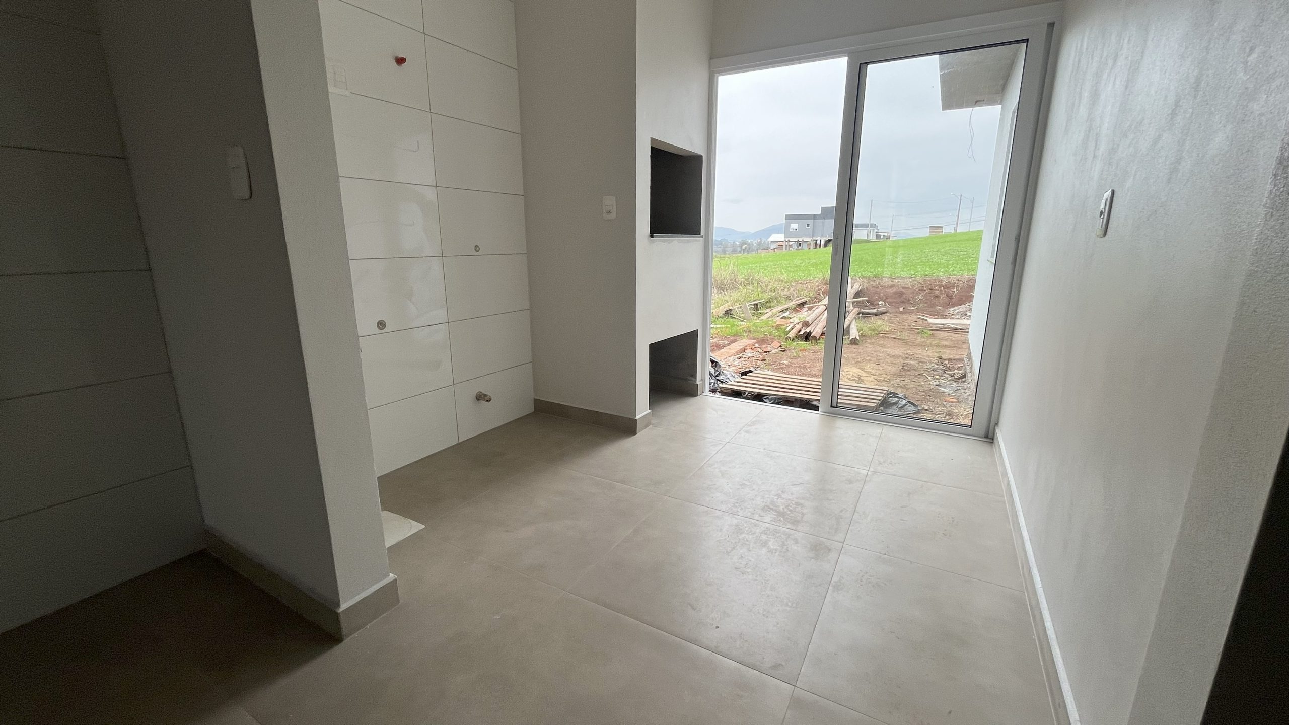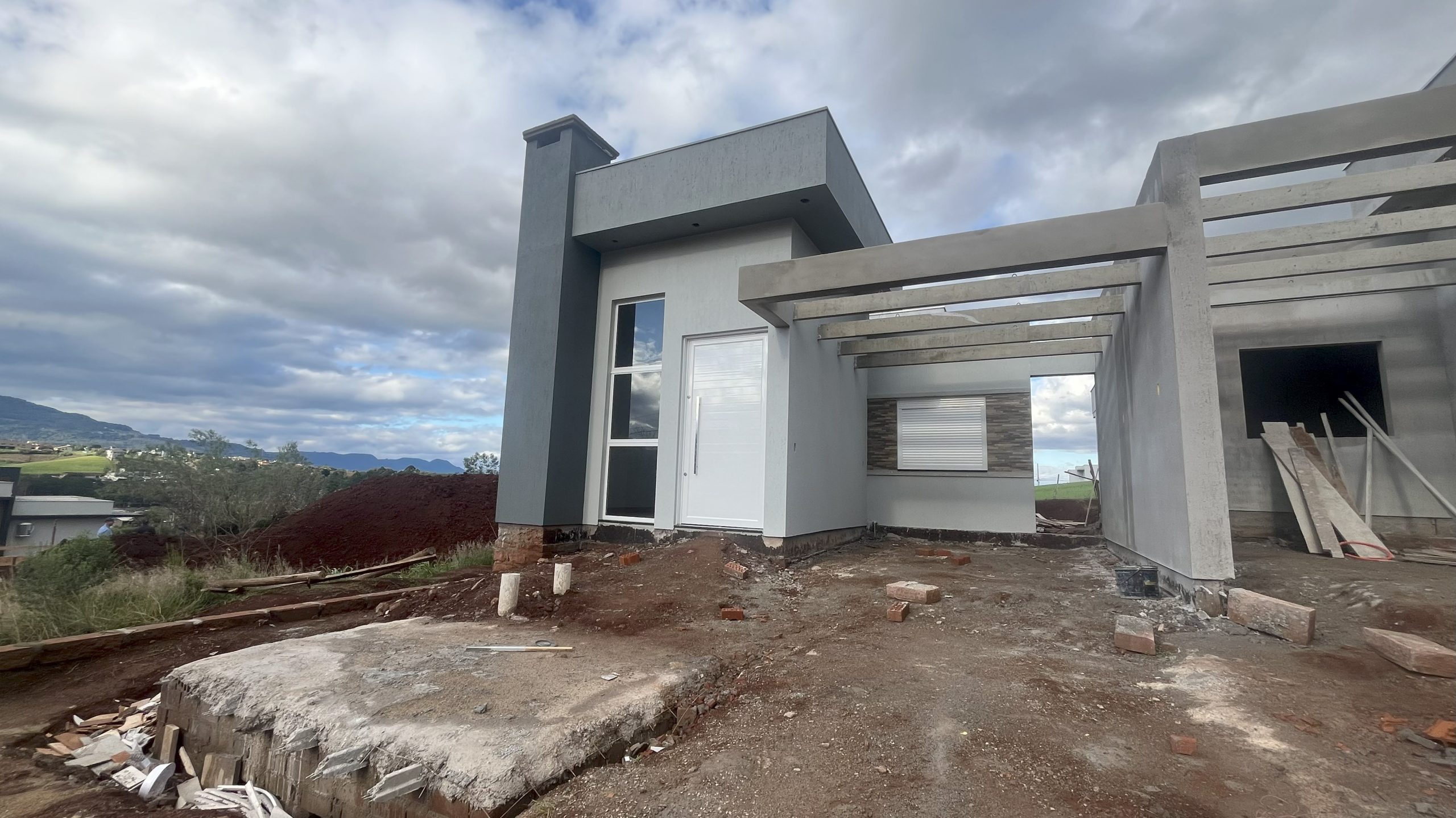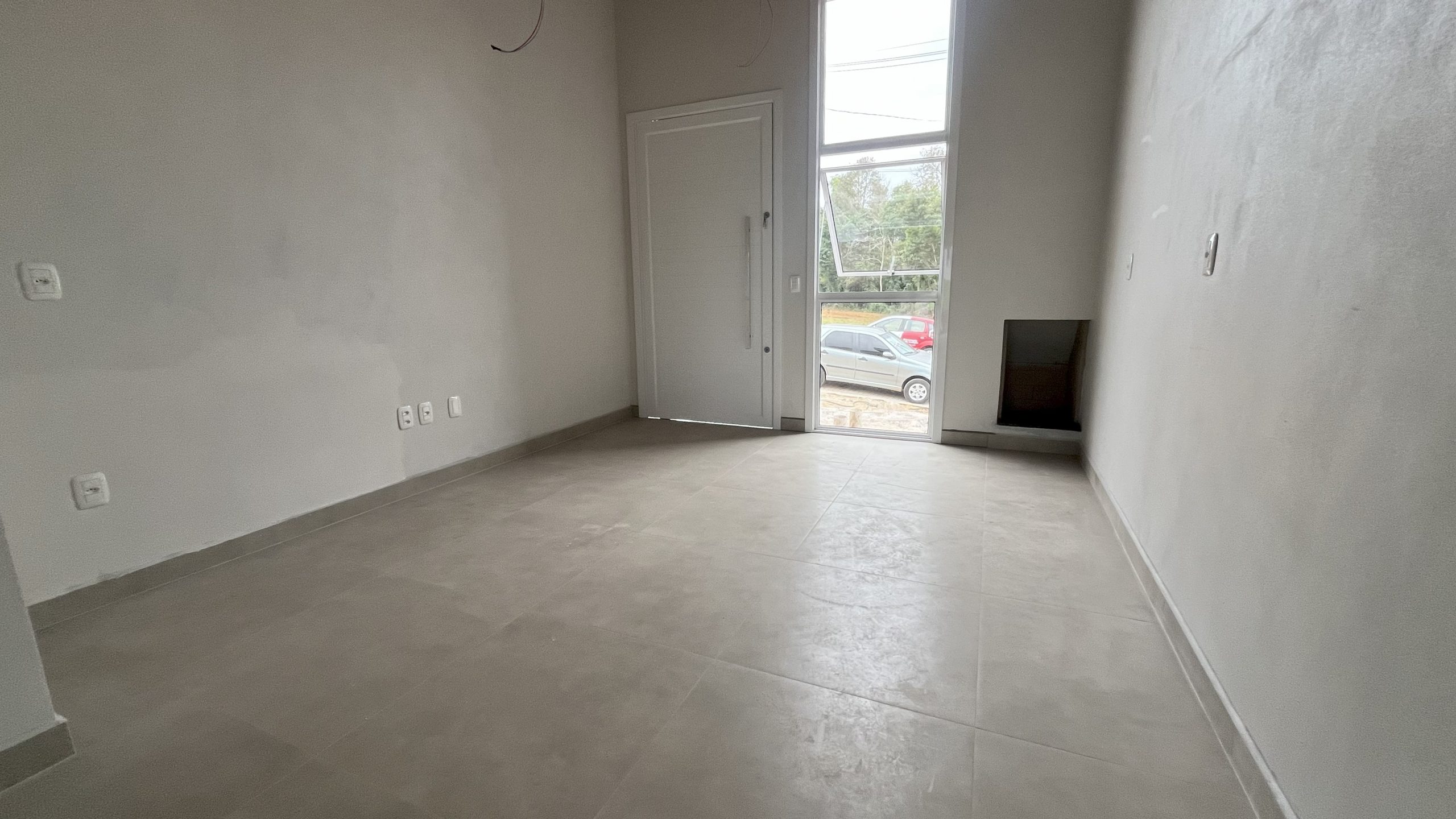 2 dormitórios (sendo 1 suíte), Sala de Estar com pé direito alto e lareira, Cozinha integrada, Área de Serviço, Porcelanato em toda a casa + opção de laminado nos quartos, Aberturas em alumínio, Pátio na frente e nos fundos, 2 vagas de garagem, Churrasqueira e espera para energia solar