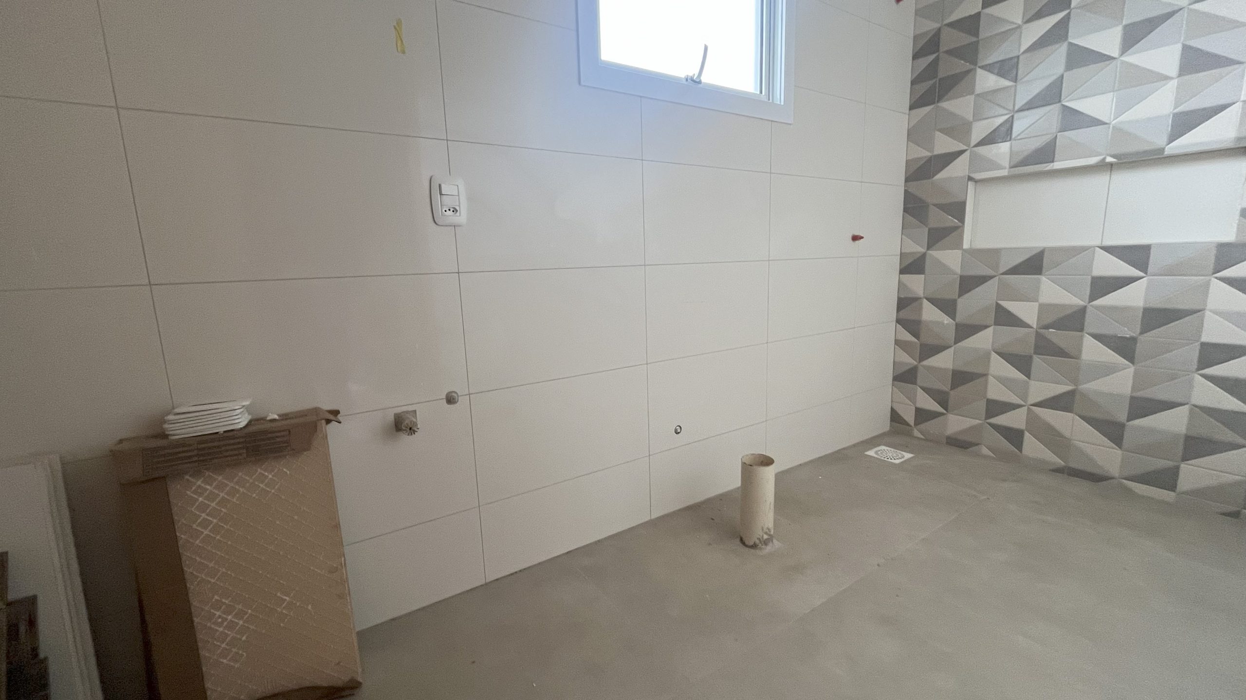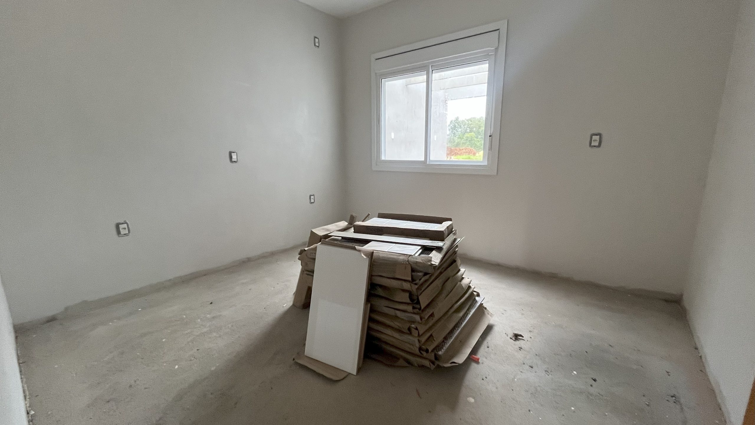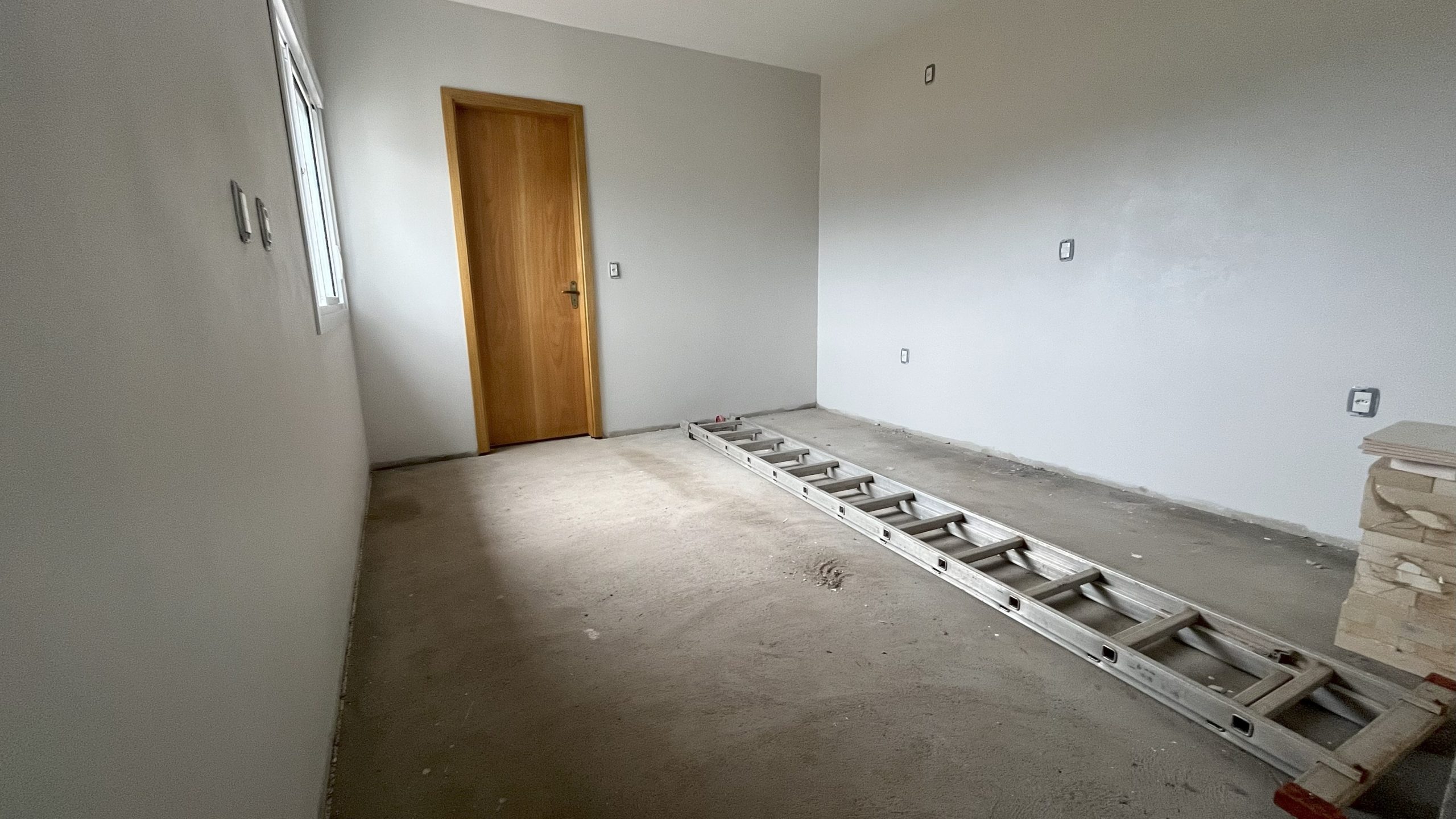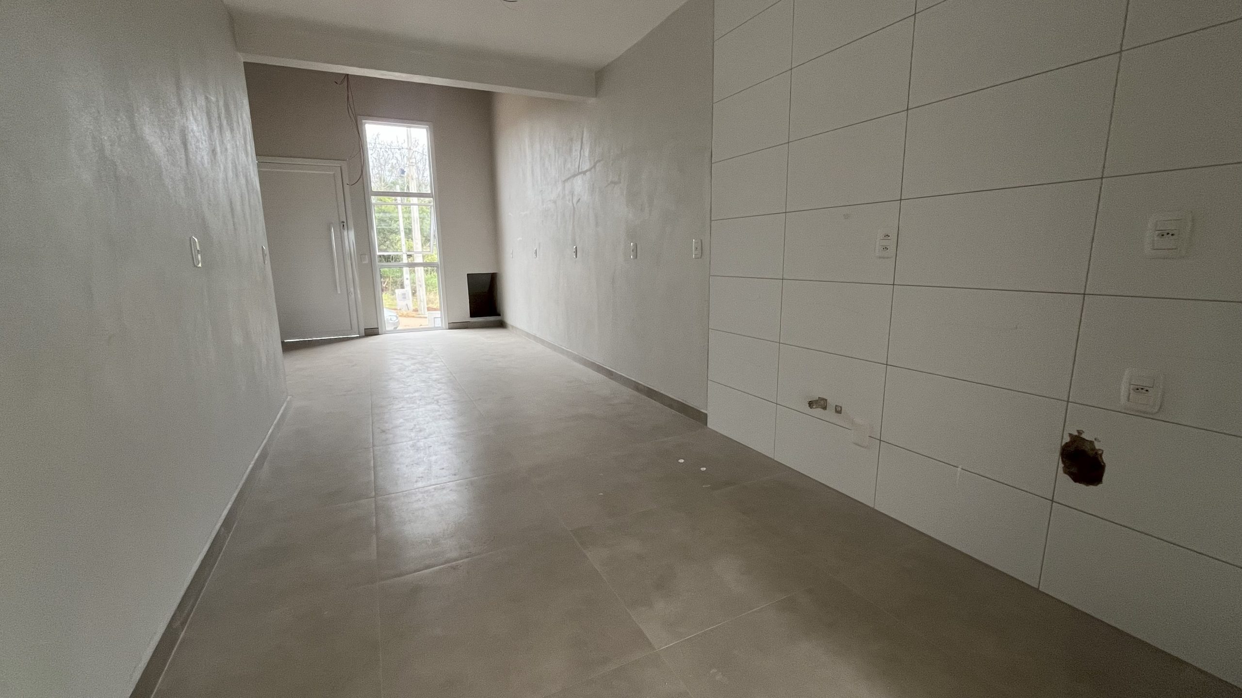 2 dormitórios (sendo 1 suíte), Sala de Estar com pé direito alto e lareira, Cozinha integrada, Área de Serviço, Porcelanato em toda a casa + opção de laminado nos quartos, Aberturas em alumínio, Pátio na frente e nos fundos, 2 vagas de garagem, Churrasqueira e espera para energia solar
