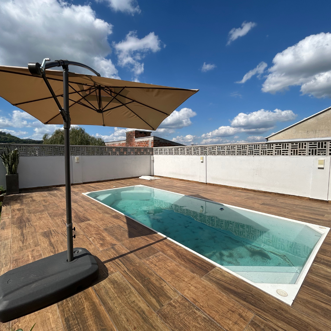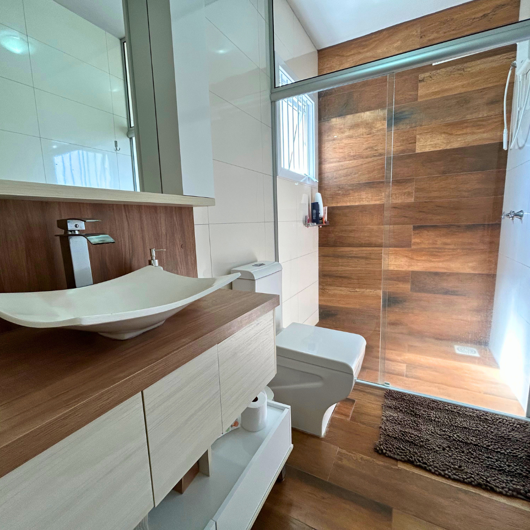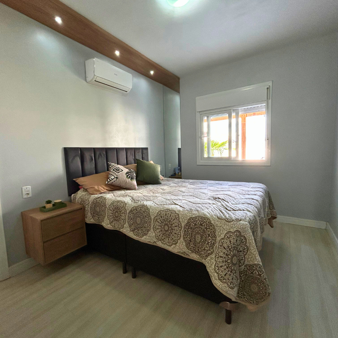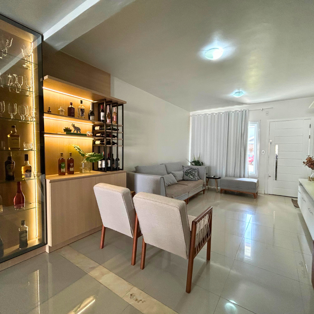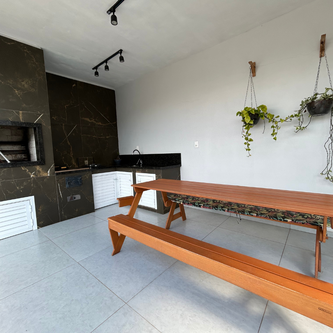Com sala de estar aconchegante e um moderno bar integrado, 2 dormitórios amplos sendo 1 suíte, banheiro social, sala de jantar com espaço social perfeito para receber, uma charmosa ilha na cozinha planejada, churrasqueira, pátio nos fundos com piscina e quiosque, além de uma prática área de serviço. Um lar completo para viver bons momentos em família