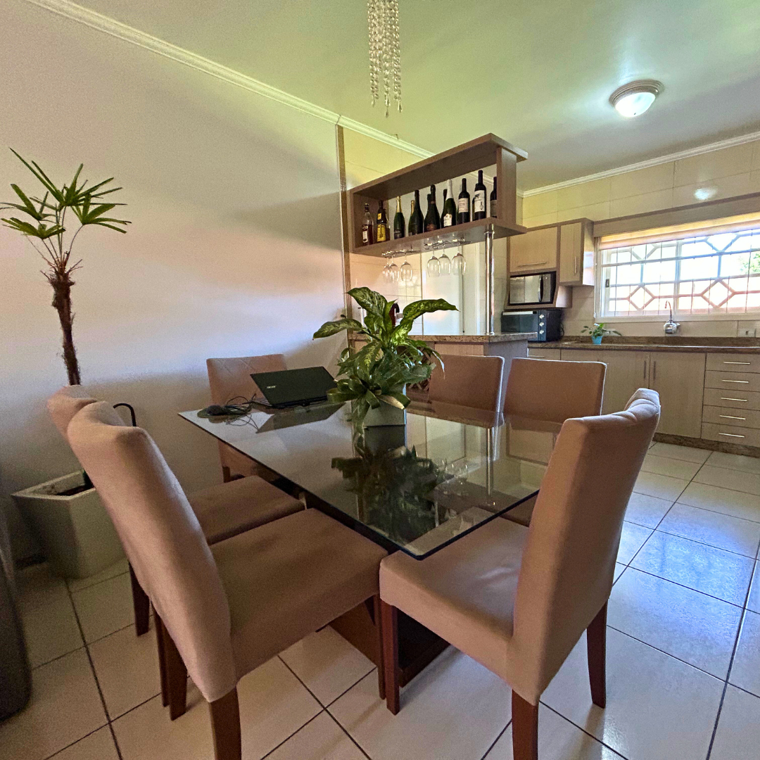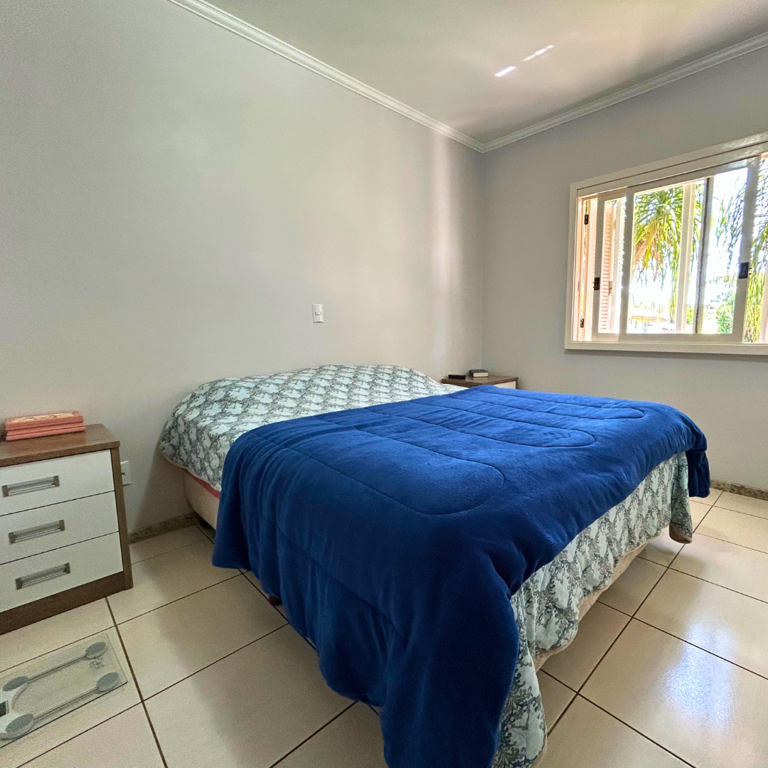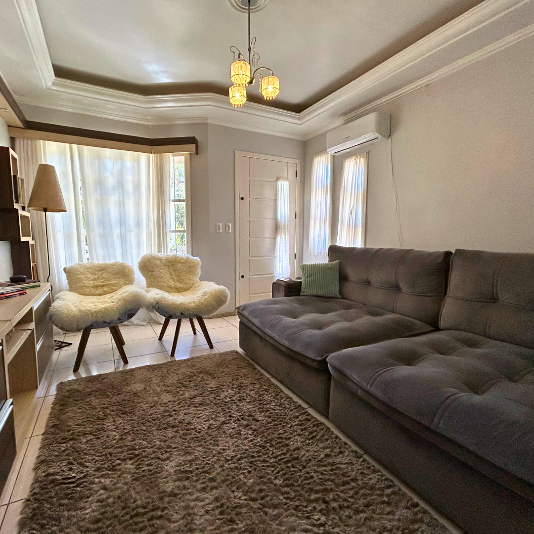 conta com uma aconchegante sala de estar, cozinha com móveis planejados, dois dormitórios amplos, banheiro social, garagem fechada, churrasqueira perfeita para momentos em família, área de serviço, despensa, semi mobiliada e um ótimo pátio nos fundos, tudo com a segurança da cerca elétrica.