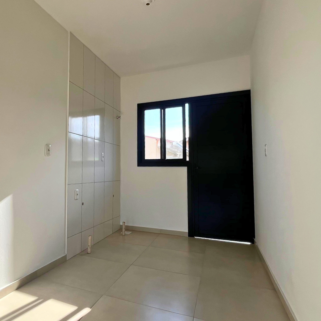 Essa casa contém Sala de Estar integrada com a Cozinha, Área de Serviço separada, 1 Dormitório, Banheiro Social, Pátio frente e fundos e Vaga para Estacionamento.