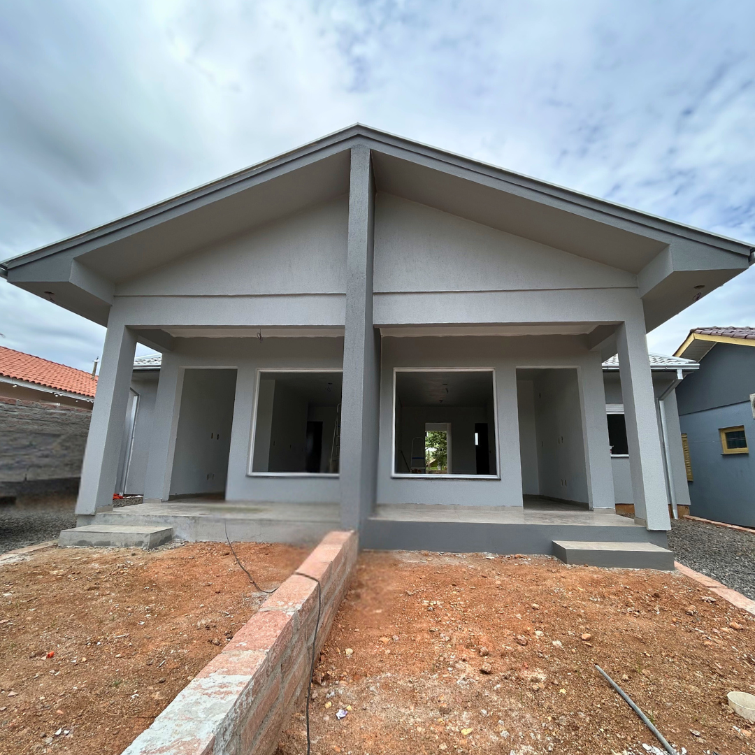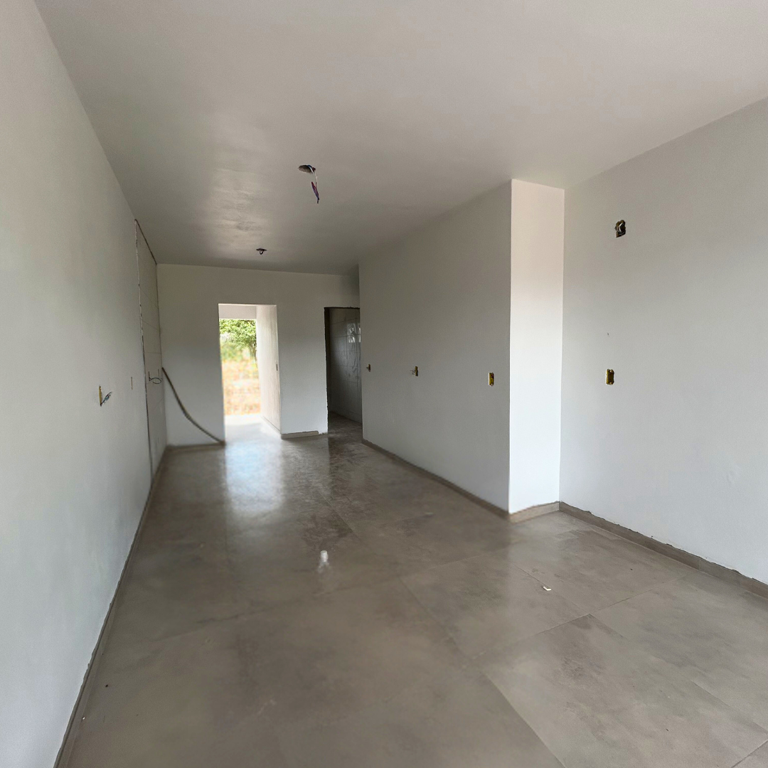 Cada casa conta com 61,10m², possuindo Sala de Estar integrada com a Cozinha, 2 Dormitórios, Banheiro Social, Área de Serviço, Churrasqueira, Vaga de Estacionamento e Pátio frente e fundos