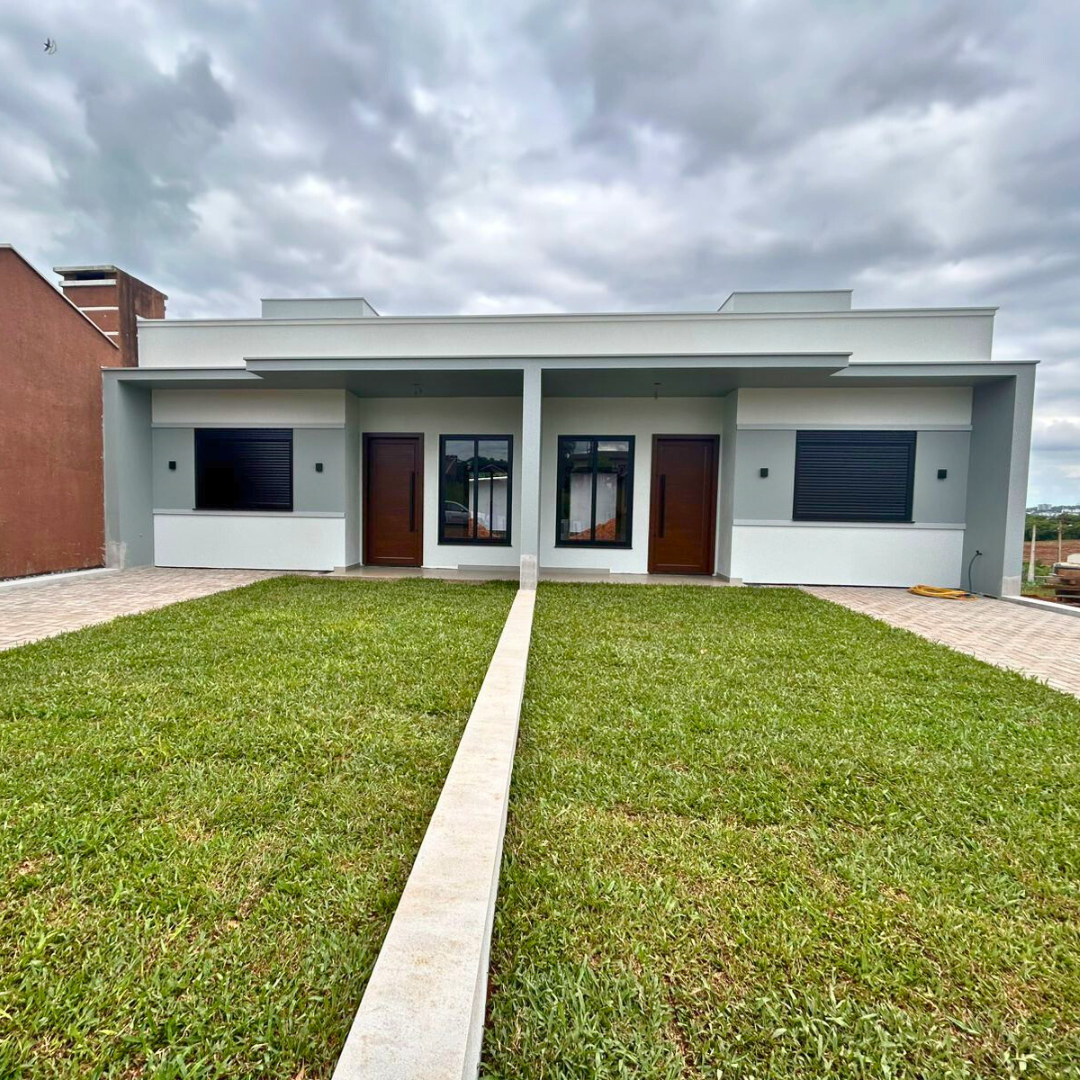 Casa geminada com 67,39m² de puro conforto e praticidade, com pátio frente e fundos. Conta com 2 dormitórios, banheiro social, sala e cozinha integradas, sala de jantar, área de serviço, churrasqueira, esquadrias em alumínio preto e espera para ar-condicionado. Um lar completo para você viver com qualidade e estilo!