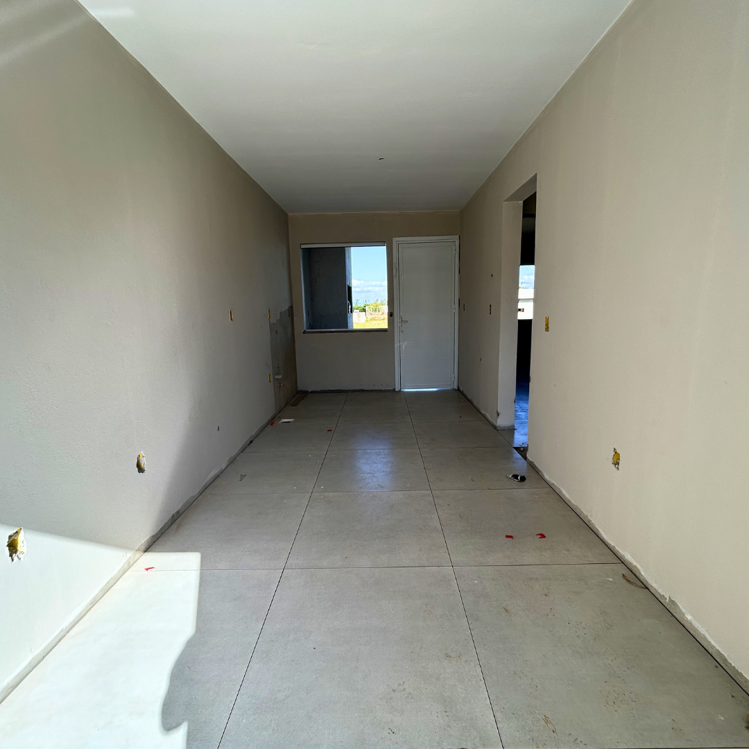 Sala de estar , Cozinha , 2 dormitórios, Banheiro social, Área de serviço, Pátio na frente e nos fundos e Vaga de estacionamento